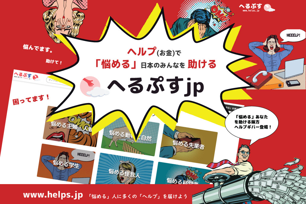 へるぷすjpは日本の多くの「悩める」を解決し、より良い社会を作るために2020年にオープン致しました。 シンプルに「悩める」人にヘルプ(お金とアドバイス)をギブできる日本初のソーシャル・ギビング・プラットフォームです。 人は困ってるときには、ポジティブなアイデアは出てきません。まずは貴方を救ってくれるヘルプギバーから「ヘルプ(お金)」を頂き、「悩める」を早期解決しましょう。